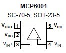 Features:(1)Available in SC-70-5 and SOT-23-5 packages; (2)Gain Bandwidth Product: 1 MHz (typ.); (3)Rail-to-Rail Input/Output; (4)Supply Voltage: 1.8V to 5.5V; (5)Supply Current: IQ = 100 μA (typ.); (6)Phase Margin: 90° (typ.); (7)Temperature Range of Industrial: -40°C to +85°C; (8)Temperature Range of Extended: -40°C to +125°C; (9)Available in Single, Dual and Quad Packages.